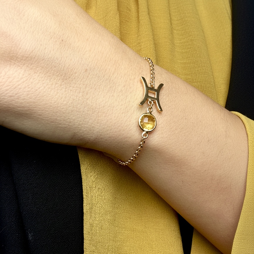 Bracciale artigianale dedicato ai nati sotto il segno dei Gemelli. Realizzato in argento 925 nel laboratorio orafo WB Oro, con cura dei dettagli e design elegante.