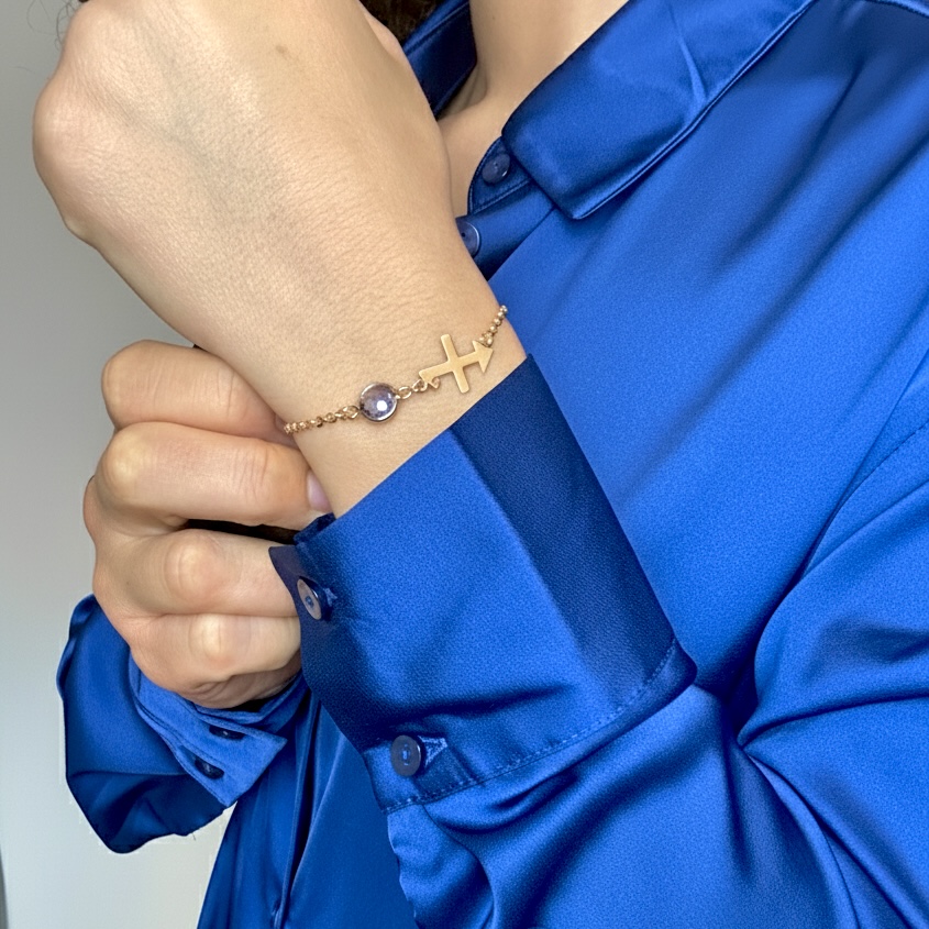 Bracciale artigianale dedicato ai nati sotto il segno del Sagittario. Realizzato in argento 925 nel laboratorio orafo WB Oro, con cura dei dettagli e design elegante.