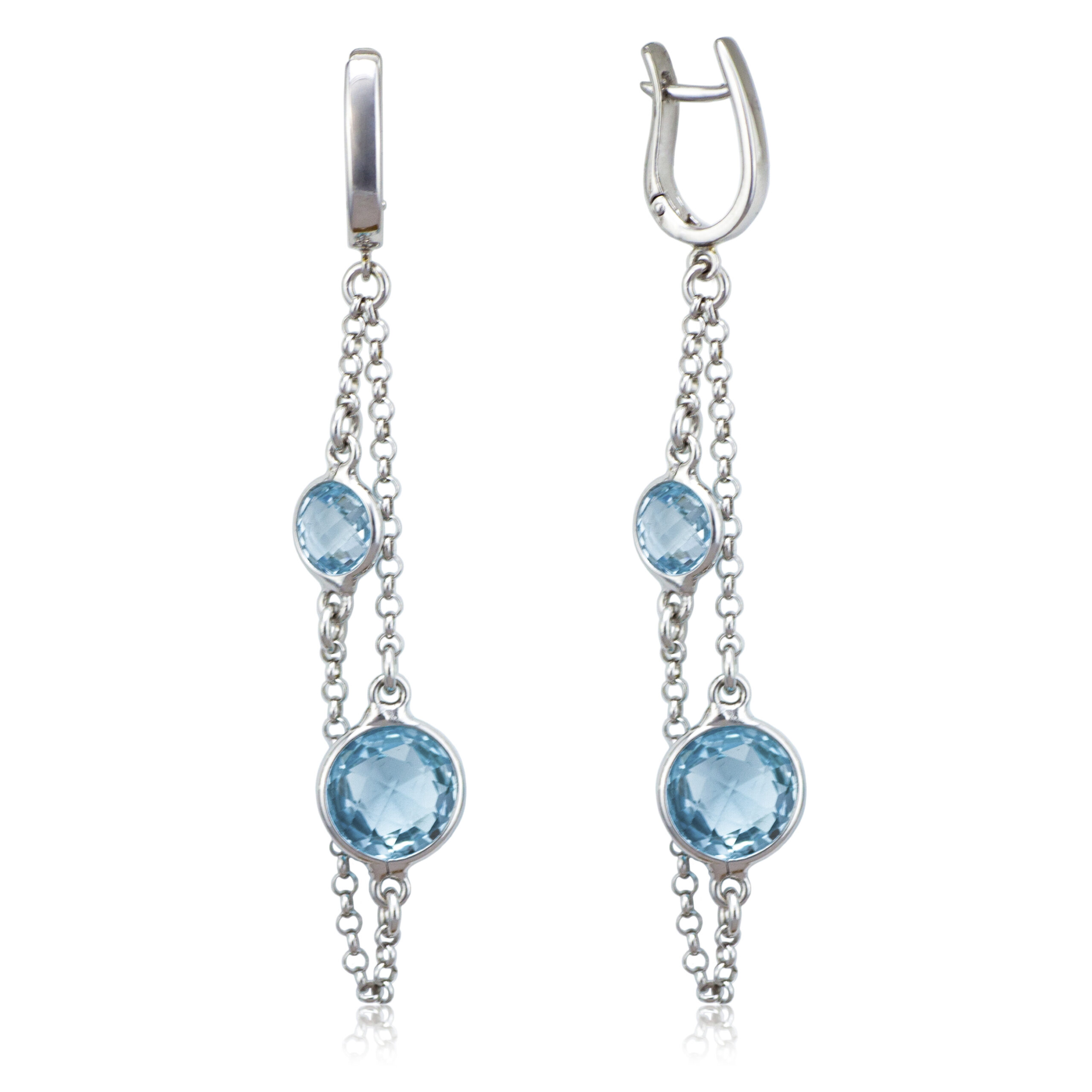 Orecchini in argento 925 con catena rolò a doppio giro, che crea un gioco di movimento tra le due pietre, attacco a monachella e pietra topazio azzurro.